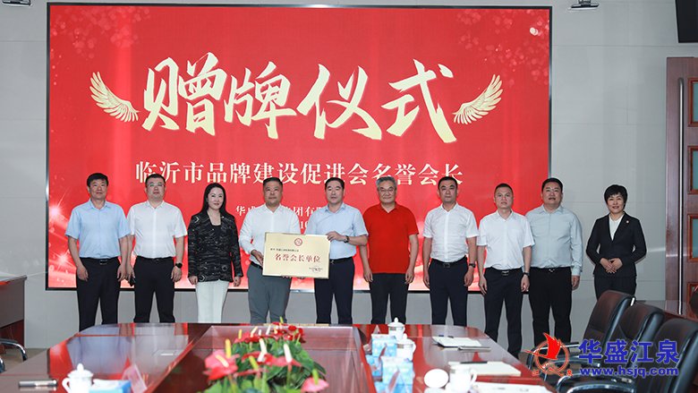 10月16日,臨沂市品牌建設促進會在集團舉行名譽會長單位贈牌儀式并進行座談交流。臨沂市政府原副市長劉賢軍,臨沂市品牌建設促進會會長胡守利、秘書長劉亦珈,華盛江泉集團黨委書記、總經理高洪路,集團高管張毅、孟濤、付冬明、林洪標,以及華盛江泉城大酒店、臨沂江泉肉制品有限公司負責人出席儀式。