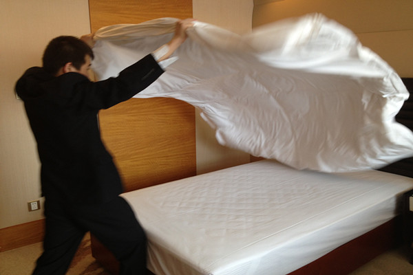 2013年4月11日14時,第三屆“勞動之星”職業(yè)技能競賽實踐操作由江泉城承辦的中式做房在江泉城客房部7樓正式啟動。本次比賽共計20名參賽選手,集團公司對比賽全程進行了現(xiàn)場監(jiān)督。繼今日的比賽項目之后其他工種的比賽也將在近期陸續(xù)展開。