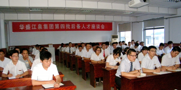 華盛江泉集團人力資源部在2014年7月12日組織今年剛通過選拔的第四批后備人才召開首次座談會,為六個序列不同單位的后備人才組建班集體。