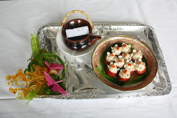 經(jīng)過層層選拔的10名廚師參加了此次比賽。本次比賽要求選手在90分鐘內(nèi)制作完成2道拿手菜品,菜品要有創(chuàng)意,符合健康飲食、營養(yǎng)搭配的要求。在比賽中,參賽選手們忙而不亂,大家都拿出了看家本領(lǐng),可謂“八仙過海,各顯神通”,廚師們用鍋碗瓢盆奏起比賽的交響樂章。不一會(huì),“千絲萬縷蝦”、“吮指回味蝦”、“梅花大腸”、“珍珠魚欖”、“秋意正濃”等一道道精美的佳肴仿佛一件件藝術(shù)品擺到了菜品展示臺上,頗見功底的各色菜肴堪稱美輪美奐,一道道美味令人垂涎欲滴。